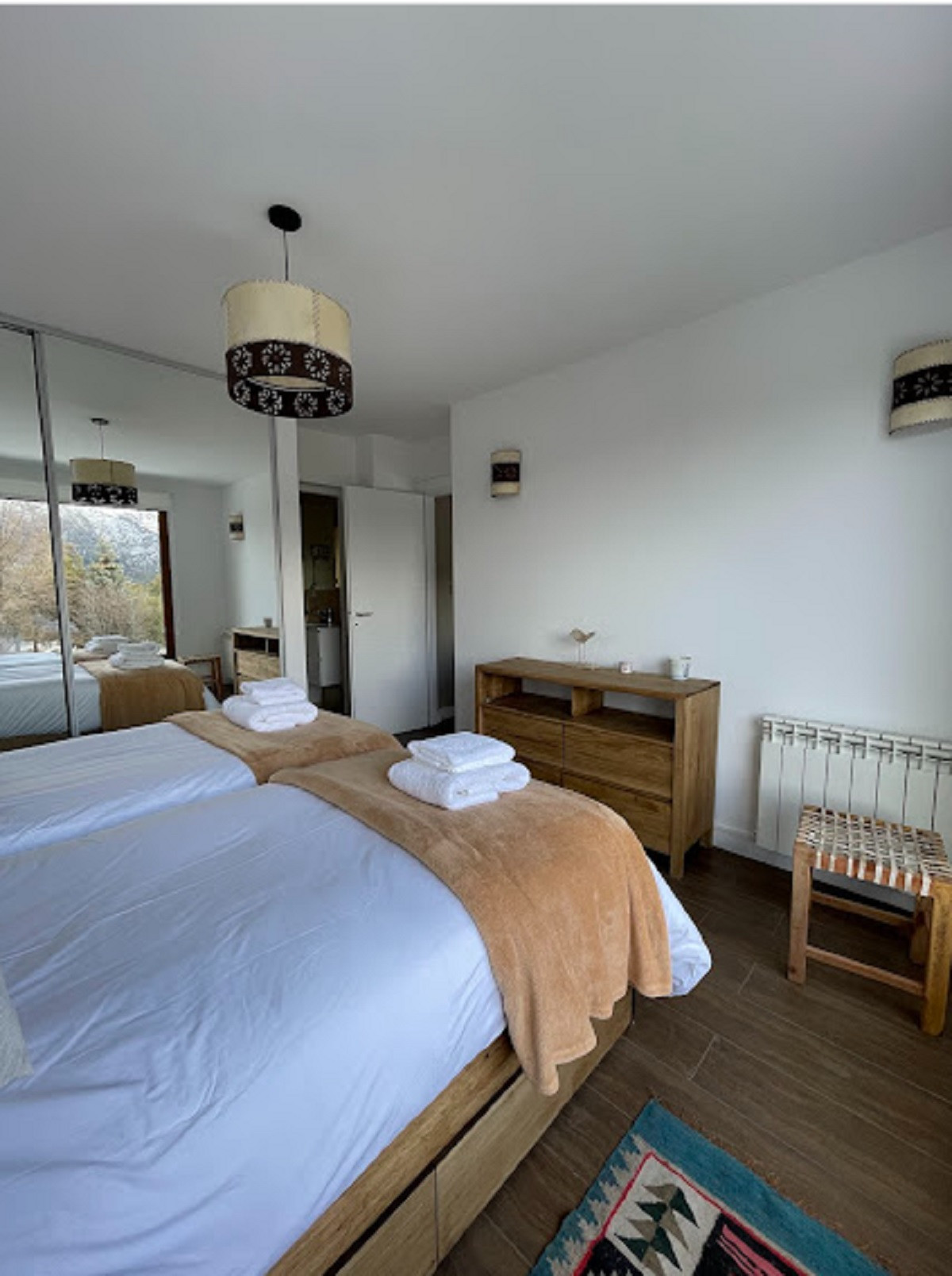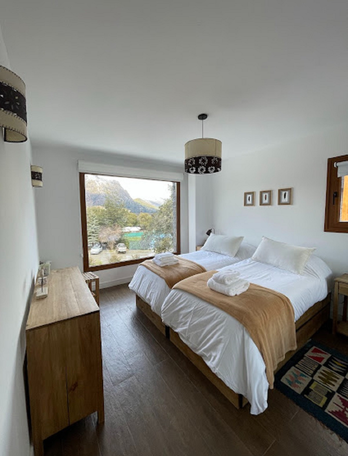 * Dormitorio principal: 2 camas individuales (se pueden poner juntas pero no se arma matrimonial) con baño en suite.
