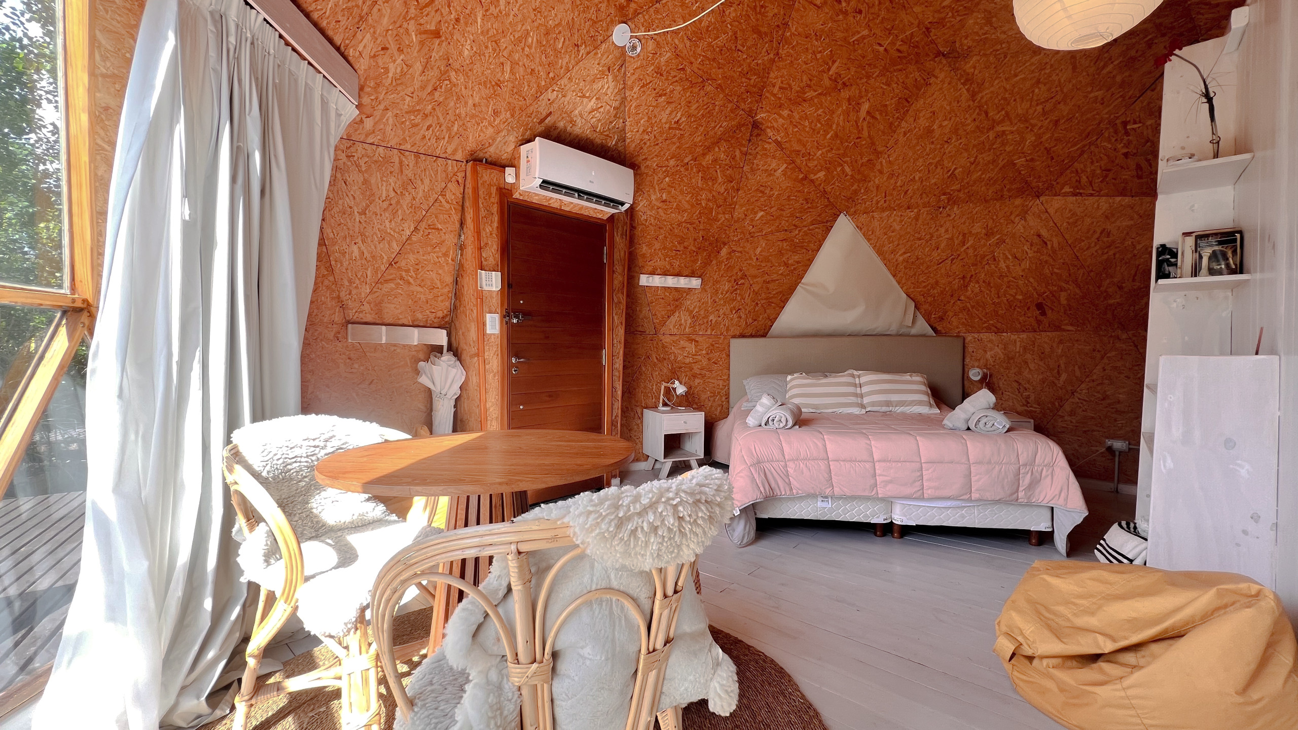 Aikén Chapa cuenta con 4 domos en un lote de 2200 m2 donde abunda el sol y los mejores atardeceres de Chapadmalal. Cada domo, de 35m2 cada uno, cuenta con todo lo que necesitás para tener una experiencia inmersa en la naturaleza pero con toda la comodidad de un hogar.