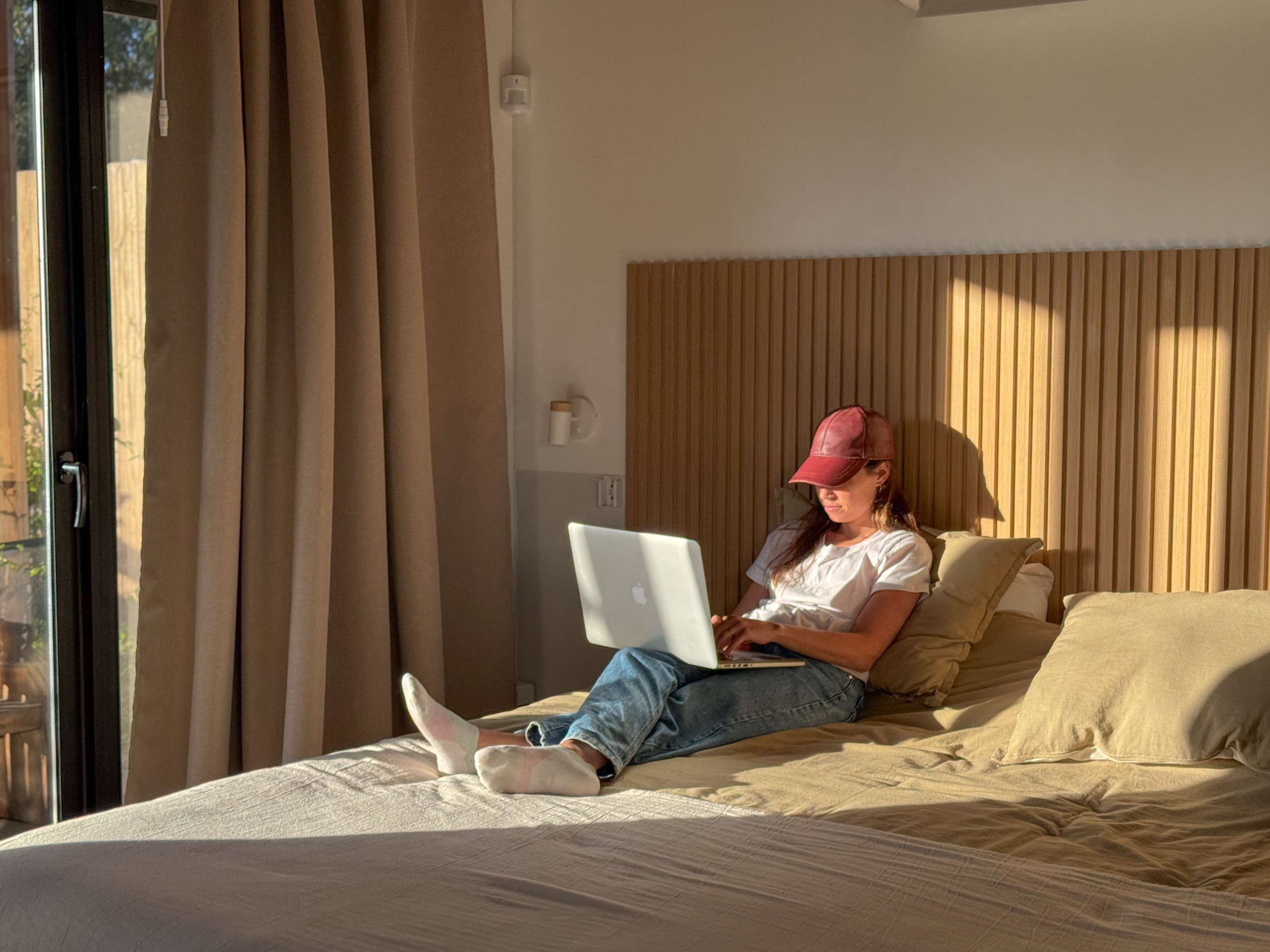 Loft Luna Roja cuenta con un living comedor con cocina integrada, equipado con aire acondicionado y un sofá cama doble que suma dos plazas más para descansar o relajarse. La cocina tiene todo lo necesario para resolver almuerzos, cenas y desayunos sin complicaciones. El dormitorio principal ofrece cama doble, TV Smart, aire acondicionado frio calor y ventanales que conectan con el patio exterior, donde te espera la parrilla y muebles para disfrutar al aire libre.