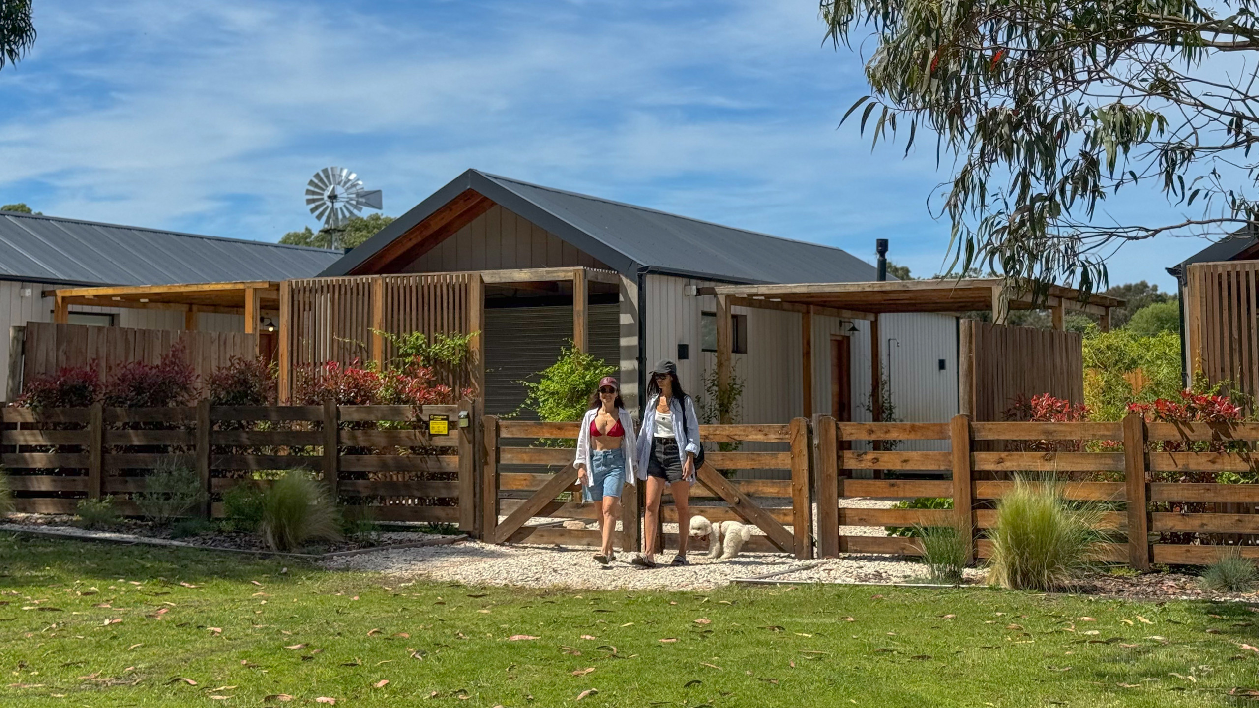 Dentro del predio vas a encontrar cinco casas independientes, cada una pensada para recibir hasta 4 personas. Tienen entrada privada, un dormitorio con cama doble, baño completo y un living-comedor con cocina integrada. El sillón cama del living cuenta con black out para asegurar buen descanso, y todas las casas tienen jardín propio con galería, parrilla, fogonero y solarium, además de aire acondicionado frío/calor y mosquiteros.