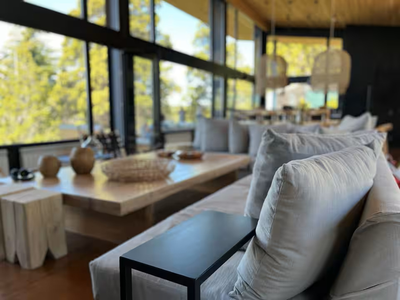 - Living comedor con cómodos sillones y espectacular vista al lago. Chimenea. Escritorio.