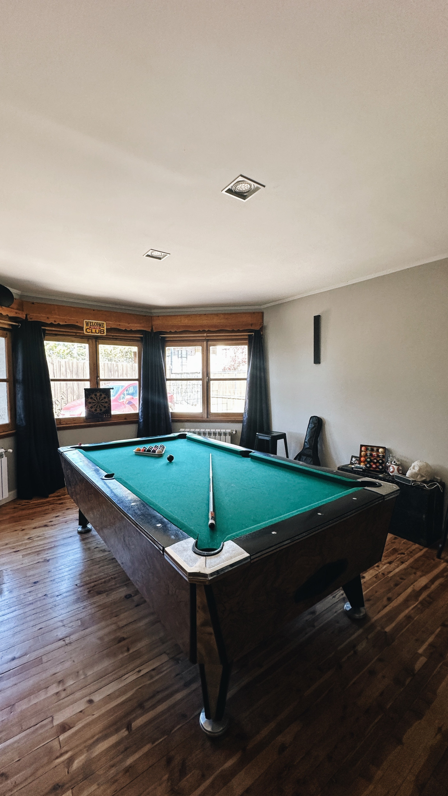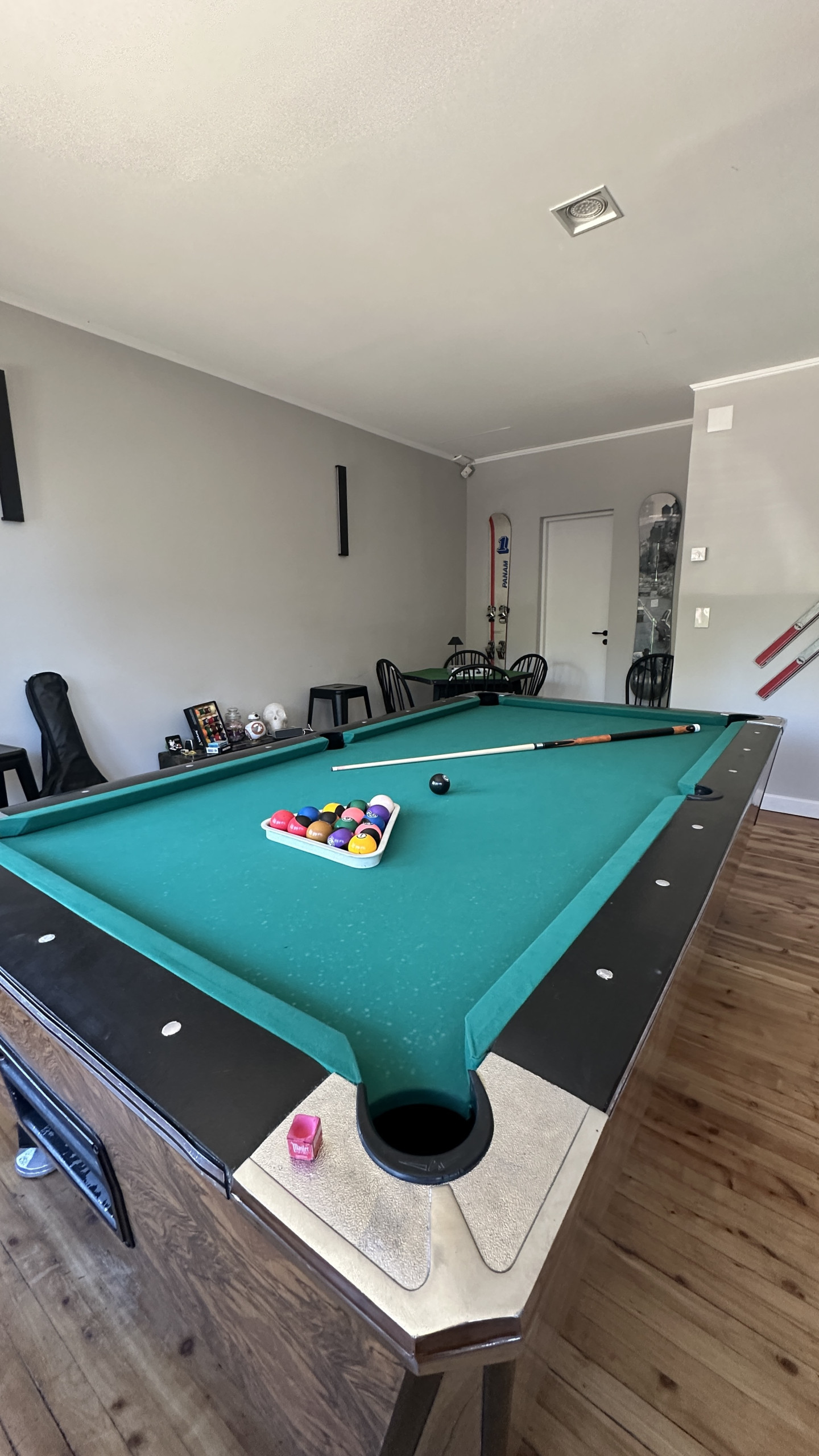 * Sala de jogos com mesa de sinuca, mesa de jogos e banheiro completo com banheira