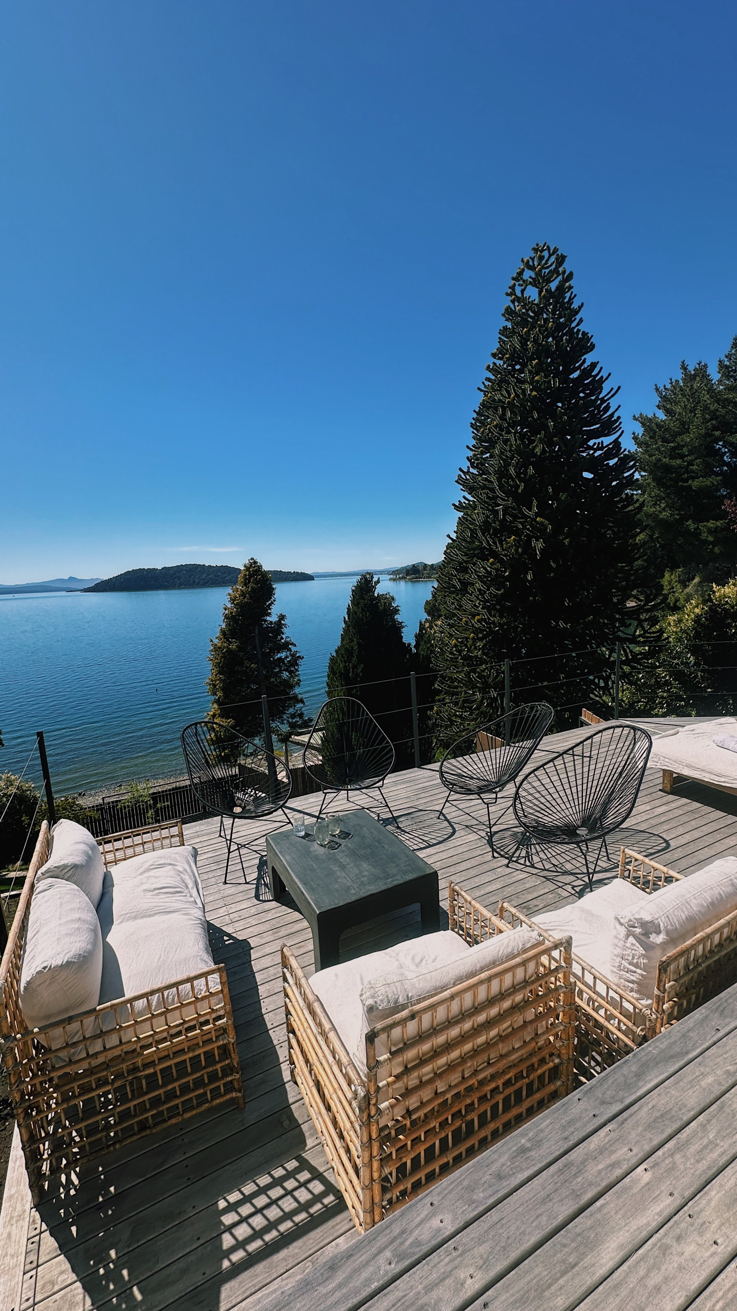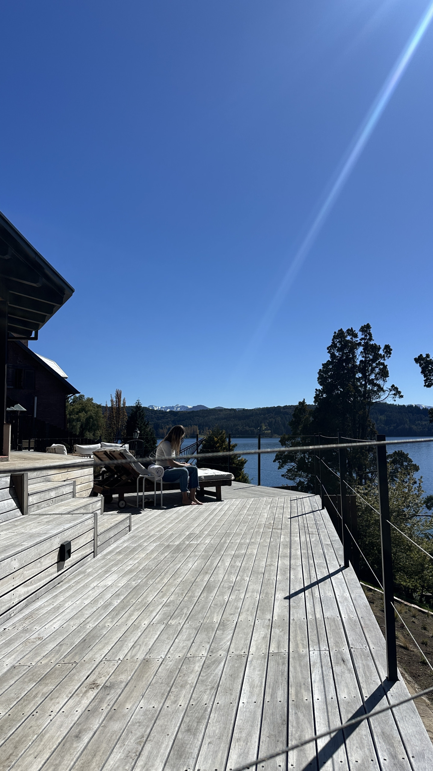 * Grande deck com vista panorâmica para o lago
