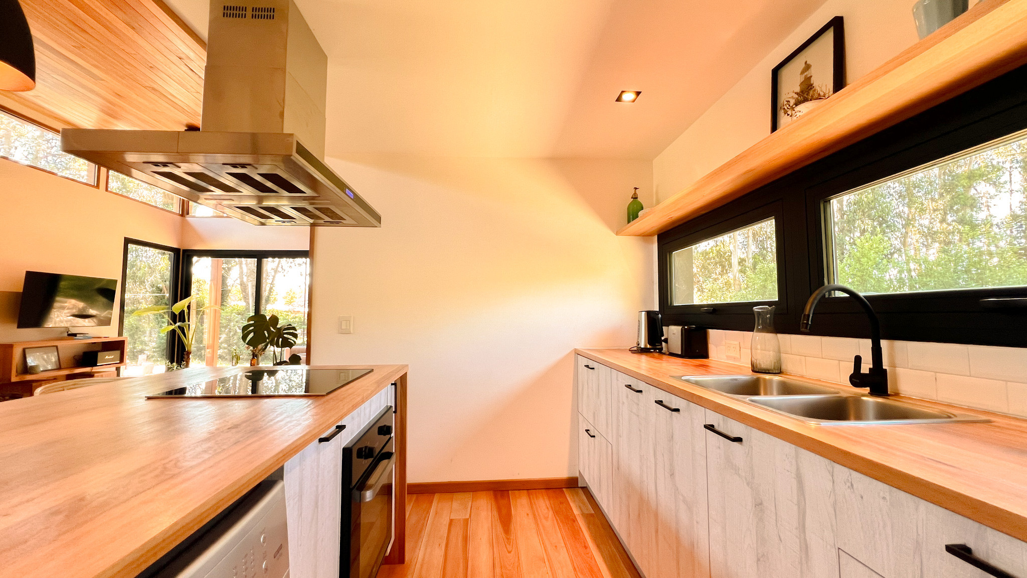 In the electric kitchen, refrigerator, oven, freezer, dishes/cutlery, kitchen utensils, coffee machine, toaster, kettle and juicer are provided.